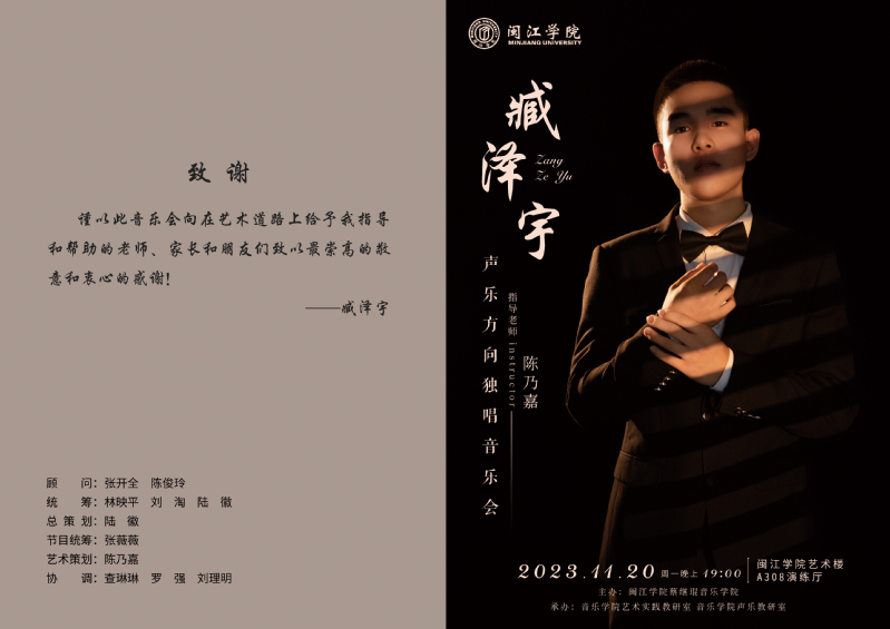 举行臧泽宇毕业独唱音乐会