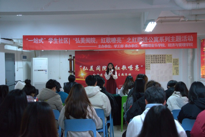 为深入贯彻党的二十大精神,深学细悟党的创新理论,弘扬伟大的建党精神,践行五育闽院,从党的重大成就和历史经验中增长智慧,增强信心,用青春唱响“强国复兴有我”的时代强音,12月20日,学工部宿舍管理与服务中心联合海棠书屋 、经管学院在三区三易起学吧开展主题为“弘美闽院,红歌嘹亮”的红歌进公寓活动。